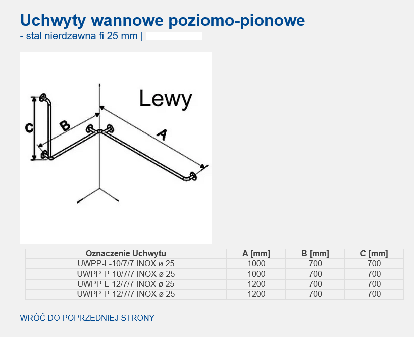 Uchwyt wannowy poziomo-pionowy stal nierdzewna fi 25 mm
